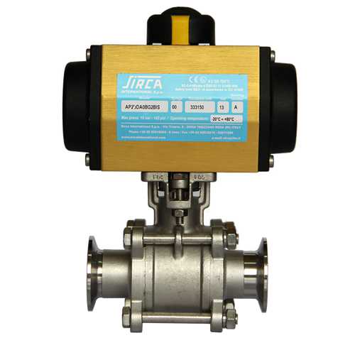SIRCA氣動卡箍球閥是氣動執(zhí)行器與卡箍球閥裝配組成。也稱為氣動衛(wèi)生級球閥。皆經(jīng)過了精密的檢驗流程和嚴(yán)格的品質(zhì)管理,流道經(jīng)過精密拋光和除菌處理,采用了全包密封,沒有死角且容易清洗。